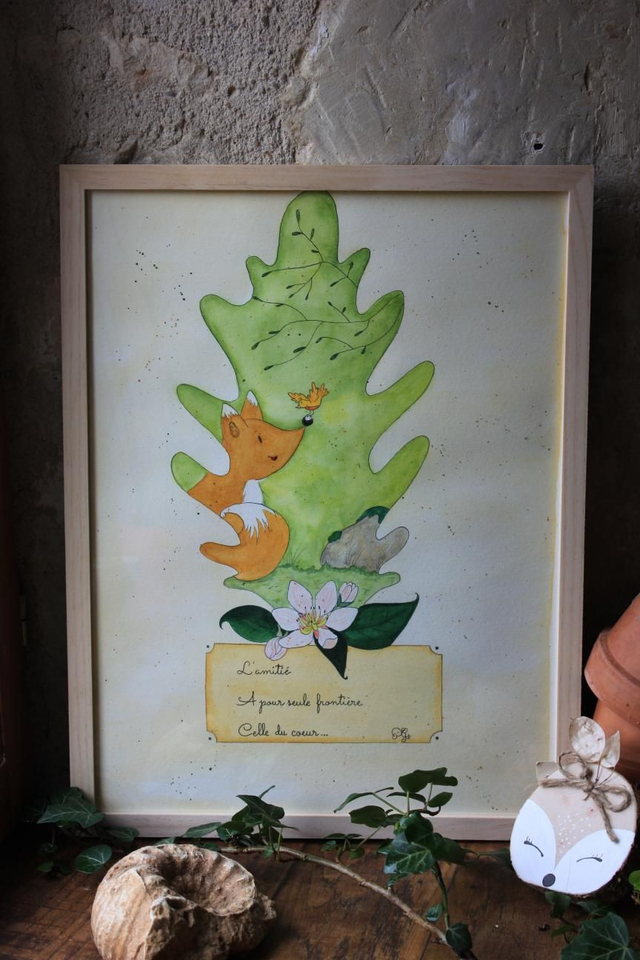 Illustration à l'aquarelle accompagnée de son poème sur l'amitié.